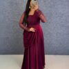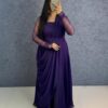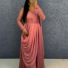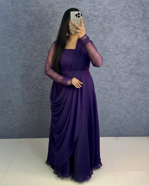 Launching exclusive party wear draping style gown outfits .This beautiful outfit made from premium space silk fabric with complete beads work on the yoke part.