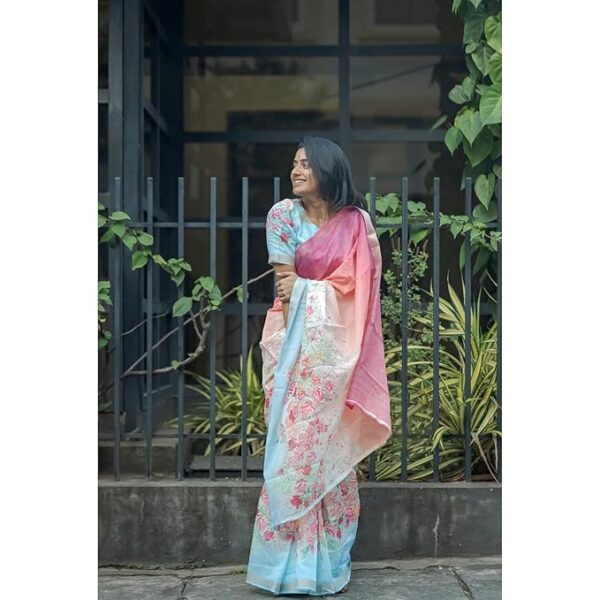 Our Floral Printed Pure Cotton Linen Saree With Contrast Border are meticulously crafted using high-quality fabrics, intricate embellishments, and intricate weaving techniques, ensuring that each piece is a masterpiece in itself. Whether you’re attending a wedding, a festive celebration, or a special occasion, our collection of women’s sarees will leave you spellbound. From traditional silk sarees adorned with intricate zari work to delicate chiffon sarees with exquisite embroidery, we offer a wide range of options to suit every taste and preference.