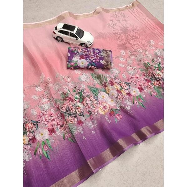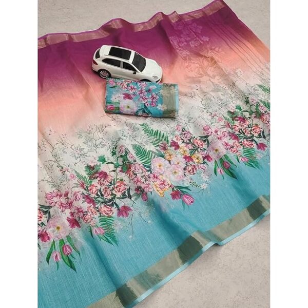 Digital Floral Printed Pure Cotton Linen Saree (Dual Colour)