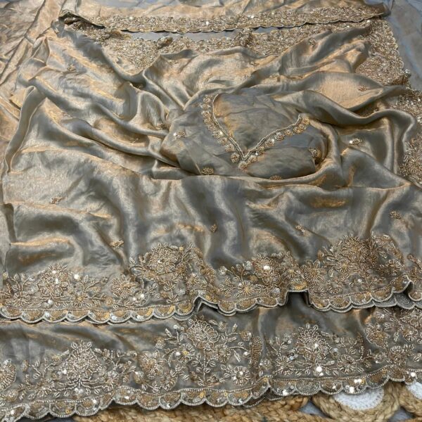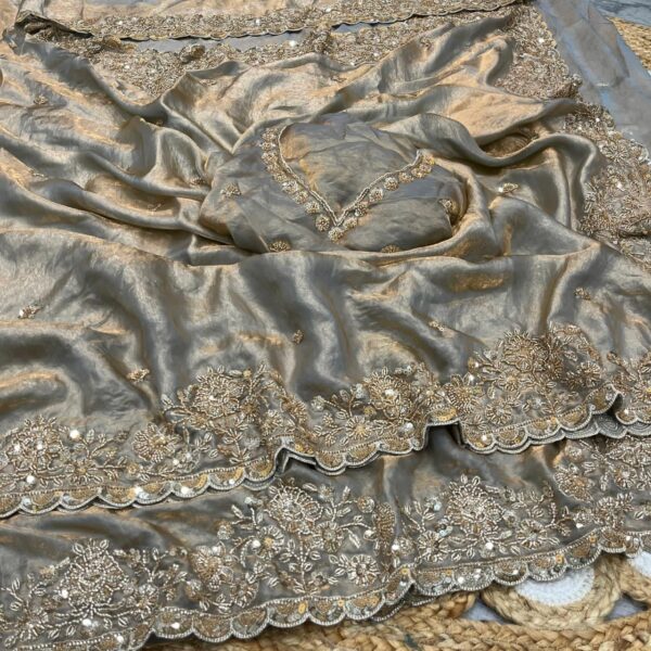 FABRIC – Soft Shiny Fendy Space Silk Velvet Finished Fabric Along With Designer Cutdana & Sequence C – Pallu Beeds Work