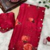 Premium Floral Teby Silk With Embroidery Work Border With Blouse