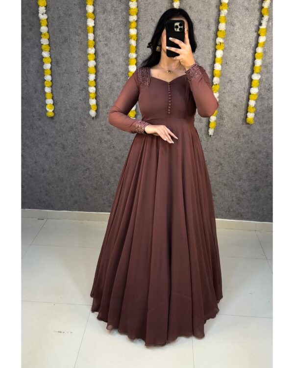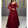 Premium Soft Georgette Gown with Floral Embroidery Work Dupatta