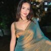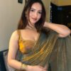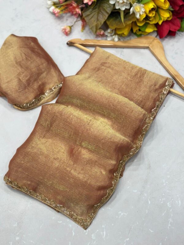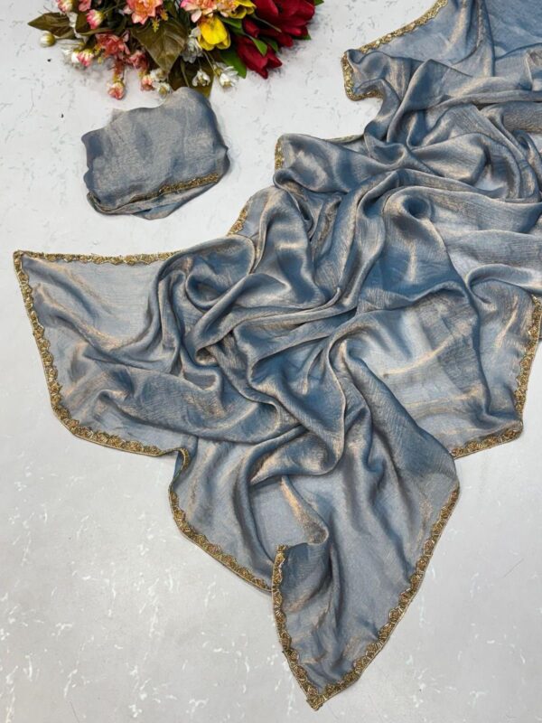 SAREE : HEAVY SOFT FENDY CHIFFON TWO TONE SILK FABRIC ON HEAVY BEADS HAND WORK RICH BORDER ON SAREE