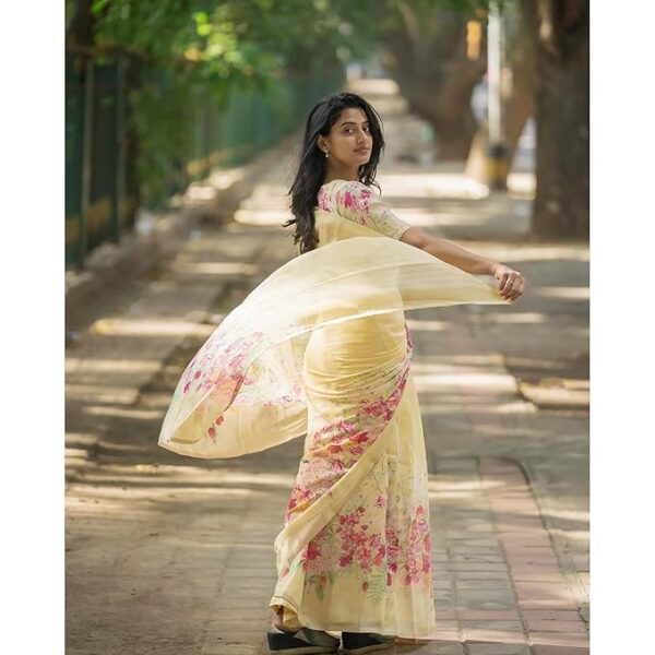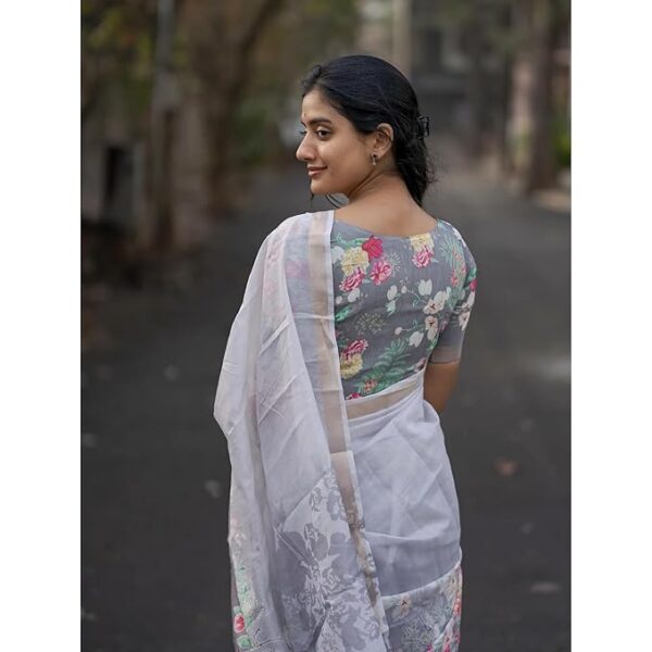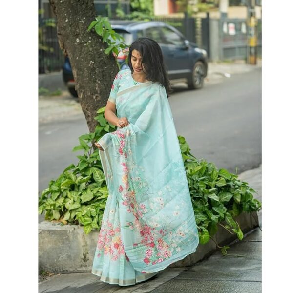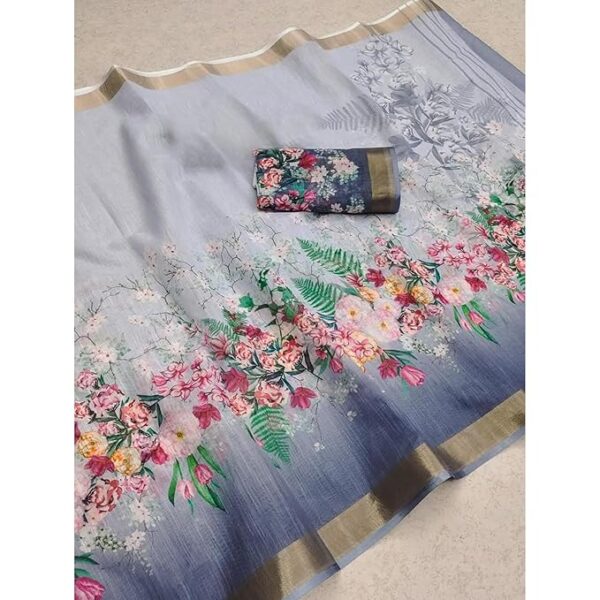 Pure Cotton Linen Saree With Floral Digital Print