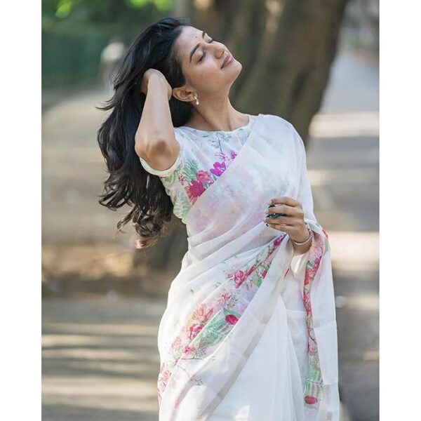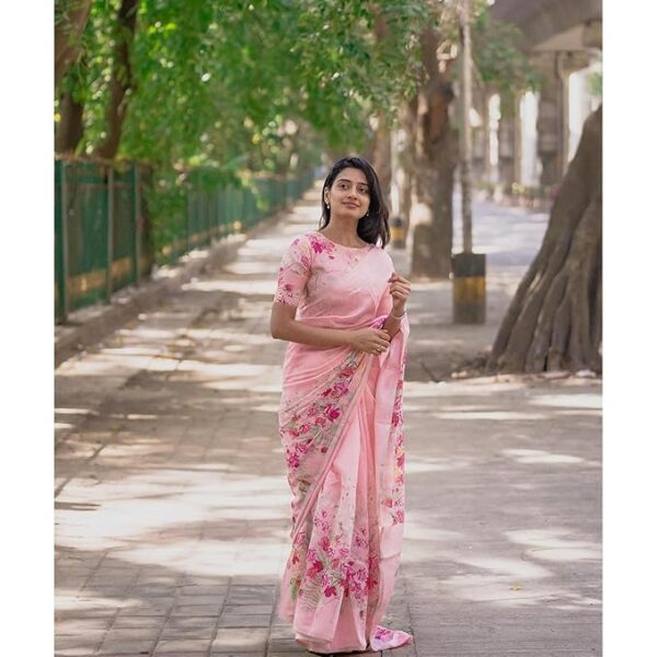 Our Floral Printed Pure Cotton Linen Saree With Contrast Border are meticulously crafted using high-quality fabrics, intricate embellishments, and intricate weaving techniques, ensuring that each piece is a masterpiece in itself. Whether you’re attending a wedding, a festive celebration, or a special occasion, our collection of women’s sarees will leave you spellbound. From traditional silk sarees adorned with intricate zari work to delicate chiffon sarees with exquisite embroidery, we offer a wide range of options to suit every taste and preference.