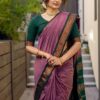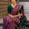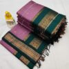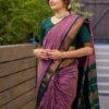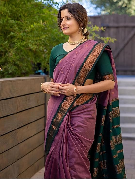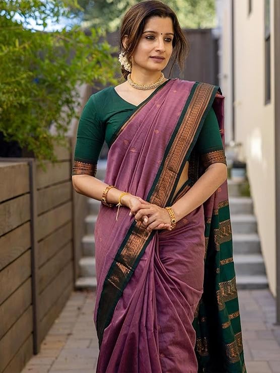 Pure Kalyani Silk Cotton Saree | Lilac Purple With Bottle Green