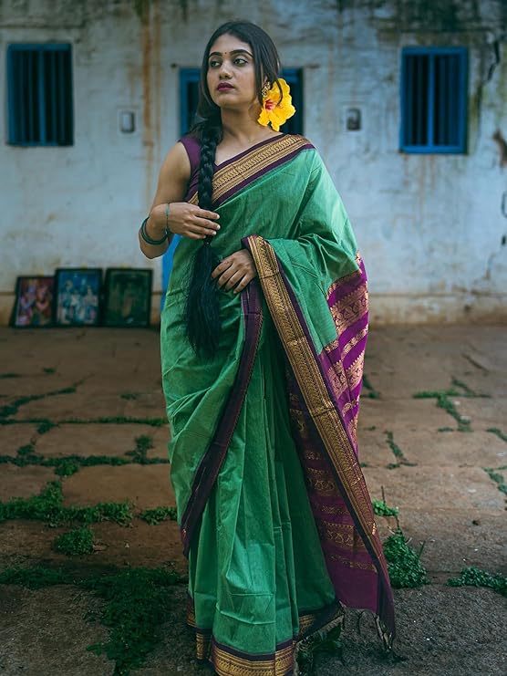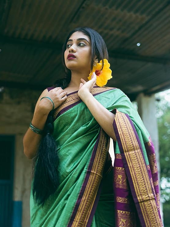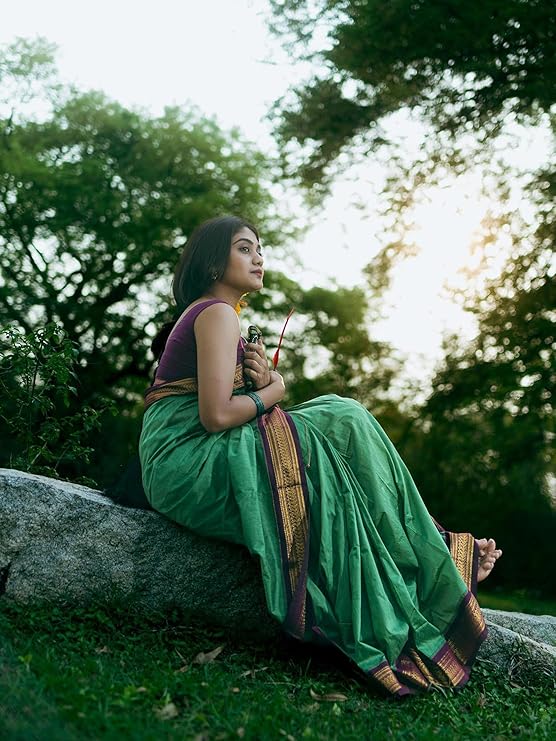 The Kalyani Silk Saree comes with a complementary blouse piece, allowing you to customize your ensemble to suit your unique style. The blouse piece is intricately designed to complement the saree, with attention to detail that enhances the overall look. Whether you’re attending a wedding, a religious ceremony, or a festive gathering, this saree is designed to captivate attention and exude timeless charm.