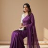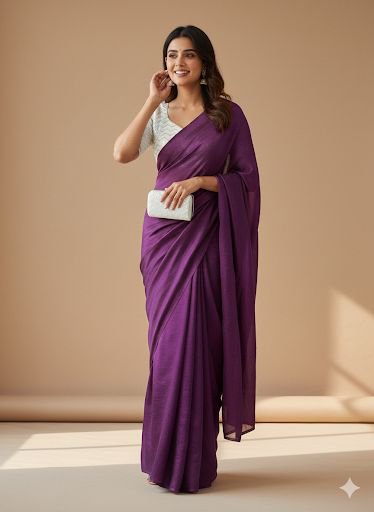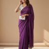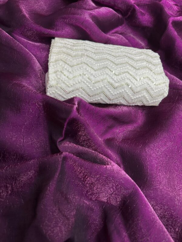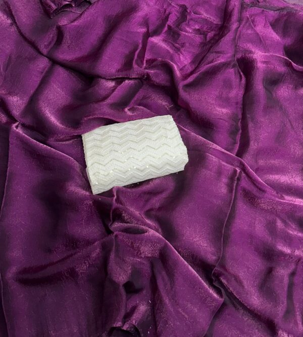 Pure Fendy satin silk plain saree with Sequence work Raw silk blouse