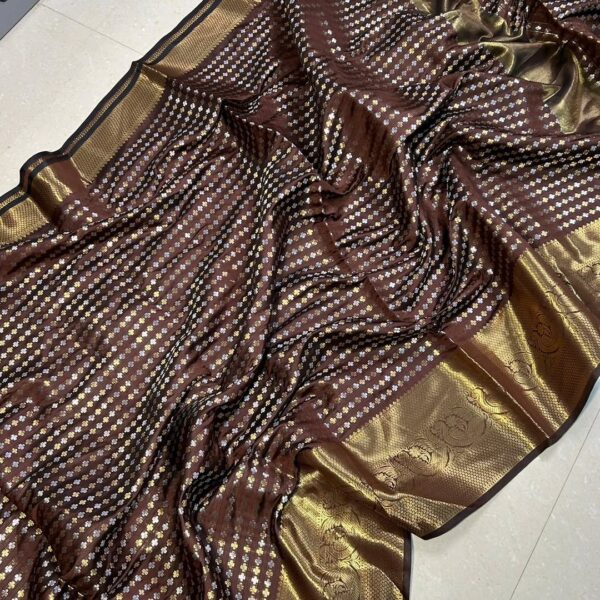 -Golden Zari Weaving Designer Jacquard Woven Border Pallu With Blouse Piece