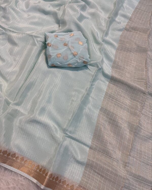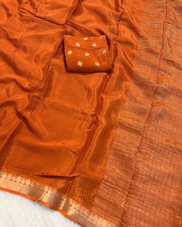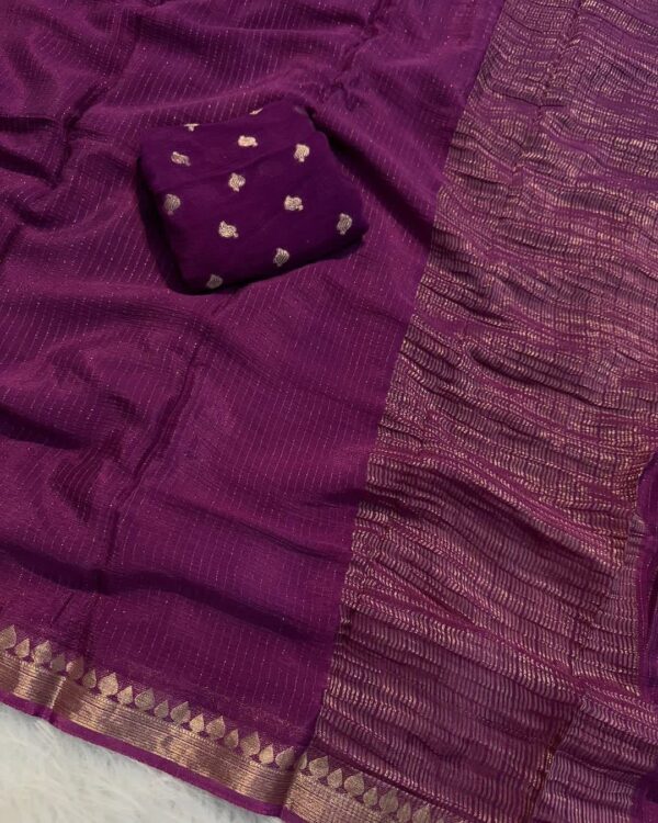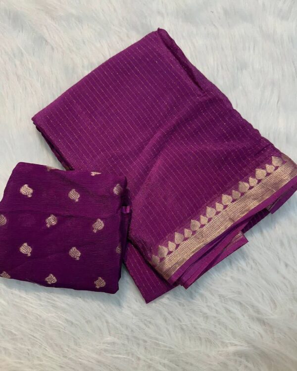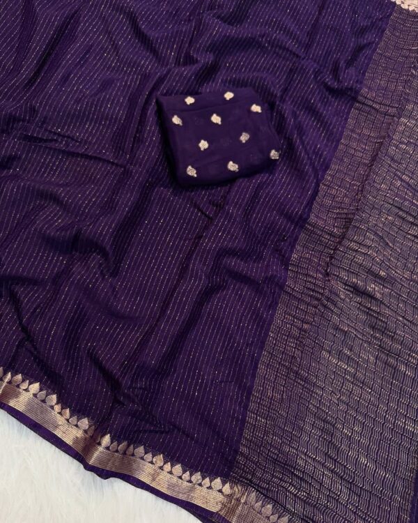 Viscose Georgette Weaving Sequence Saree Striped Design All Over The Saree With Viscose Butti Border Including Attached Running Blouse